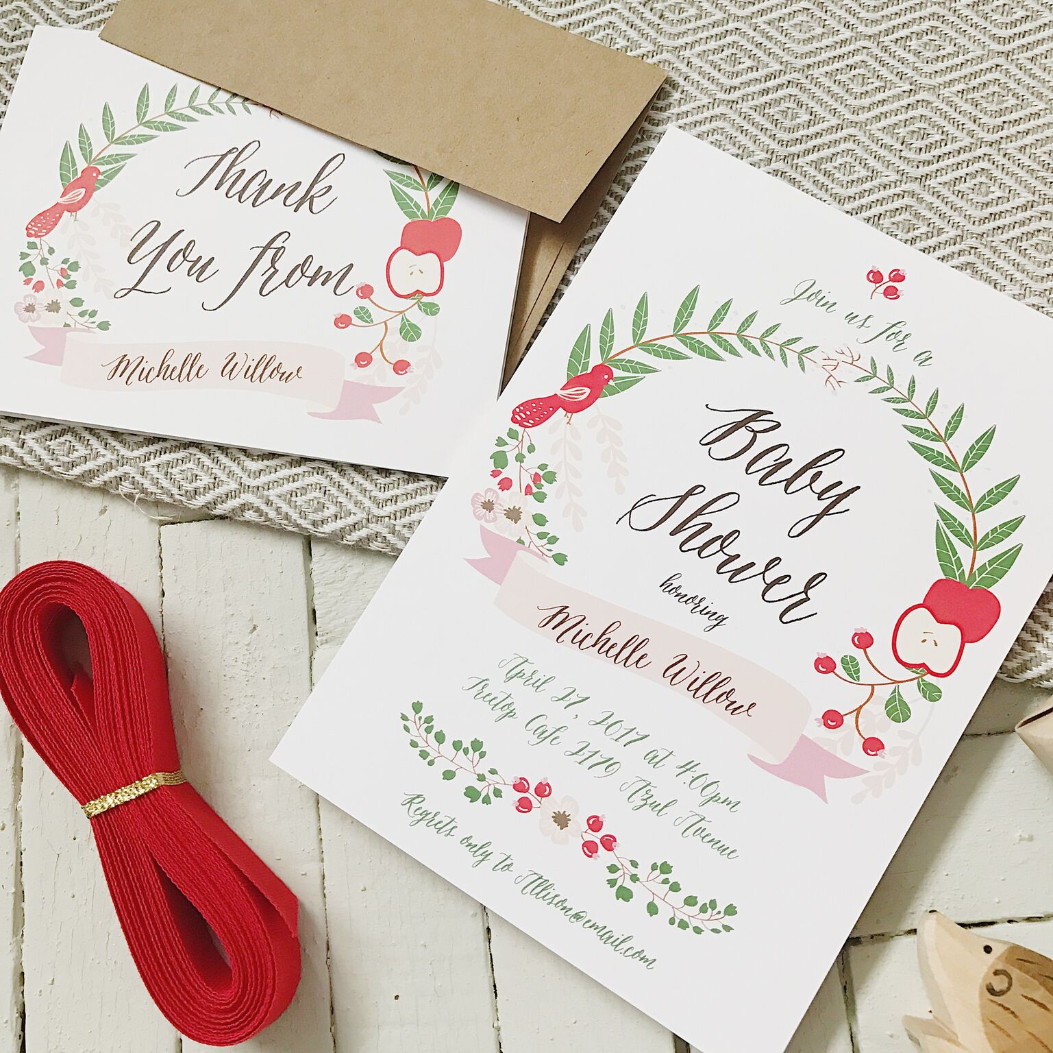 I loved that I could convert my favorites from “boy” to “girl” so easily, because Basic Invite has almost unlimited color options and lets you customize your samples so you know exactly what you’re getting. There are also tons of envelope color options and address capture connected to social media. This is SO convenient so you don’t have to hunt people down to ask for their address, you can simply connect your invitation to social media and get their address through that. SO easy.