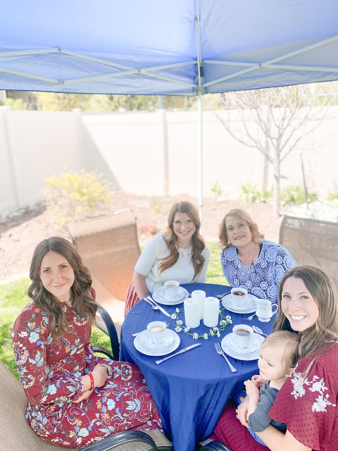 Last Saturday my cute sister Beth threw my mom and sister and I a Mother’s Day tea party! It was SO cute she had made a ton of delicious snacks and had my dad and Randy serving us. It was SO cute and so fun. We just sat in the garden and ate and chatted. It was so thoughtful of her and so fun. We had lemonade, herbal tea, bread and brie, Oreo truffles, cheesecakes—it was SO delicious. Jarem and Beth had made everything for us which was so kind of them.