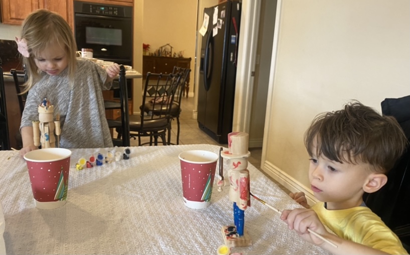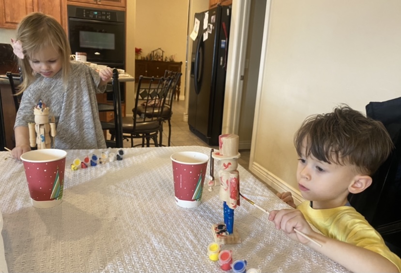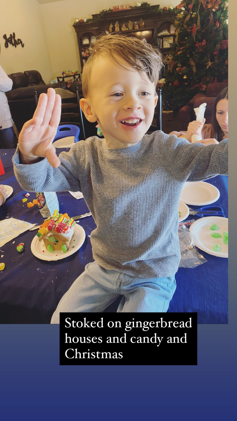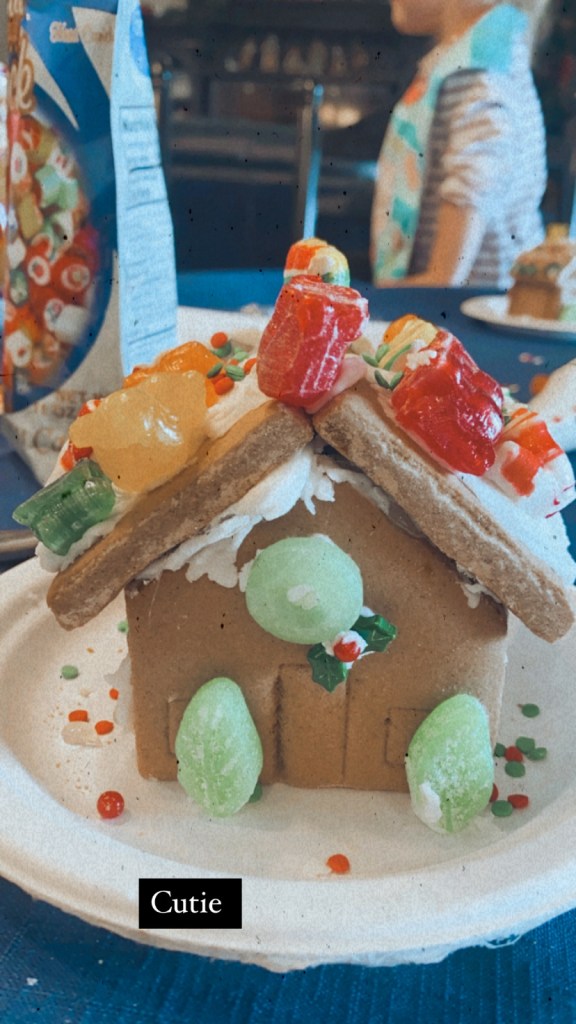 We did a fun painting craft making Nutcrackers that Graham loved. He’s kind of obsessed with Nutcrackers and it was really cute to let him make his own. And we also made gingerbread houses which was a BLAST. Graham just wanted to eat the candy and Randy got very into it, sanding it down and using glue, but it was a great time. We’ve been eating yummy food, wrapping presents, and Randy and I even escaped to a little date on a Friday night to take gifts to my friends.