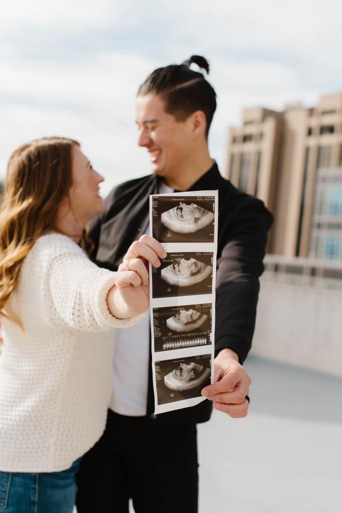 I took the test and after just a few seconds the digital test flashed PREGNANT. I was SHOCKED I couldn’t even think. Before I even knew what I was doing I walked into the other room and said RANDY OH MY GOSH LOOK. I was going to come up with a clever way to tell him but I couldn’t believe it was showing so early! I couldn’t even think!
