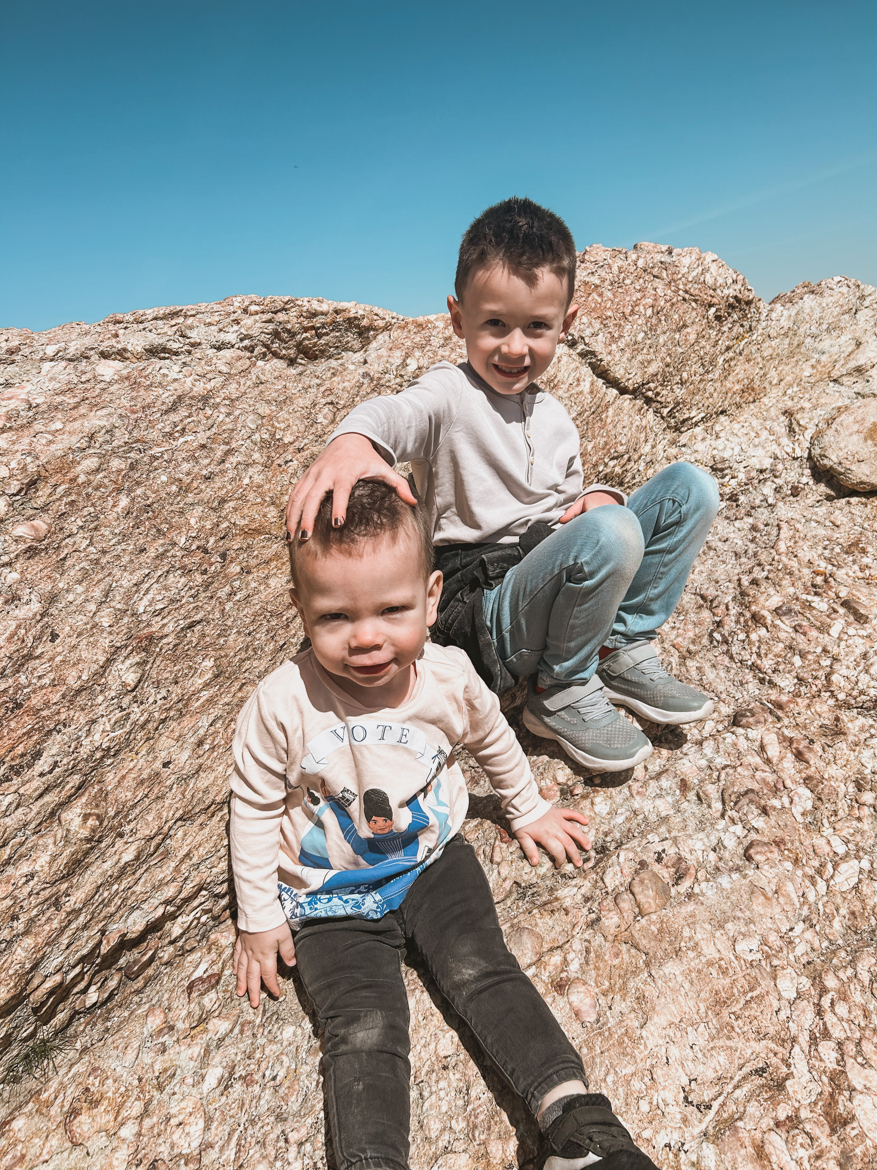 Randy went on a business trip the week after Easter so the boys and I ate out, had movie nights, and went on a super fun hike with our friends! The boys had so much fun exploring, eating snacks, and Wells was a champ being carried.