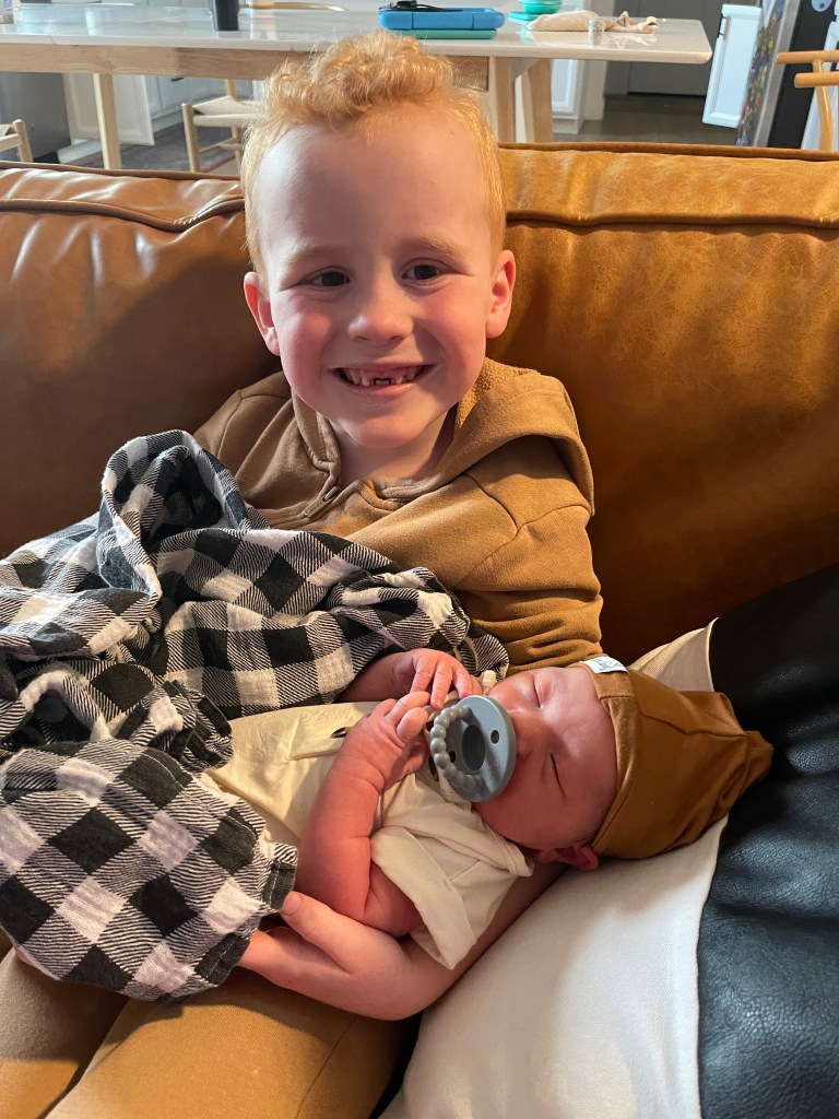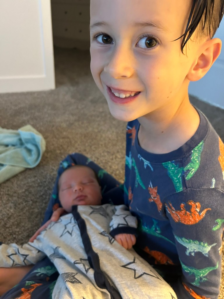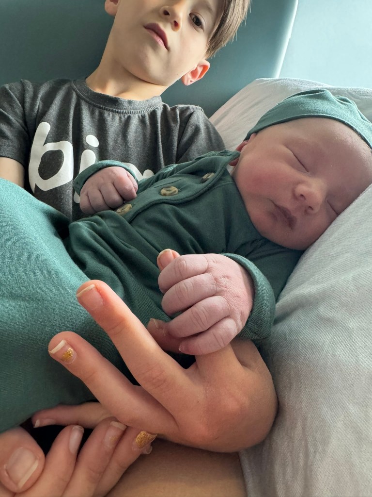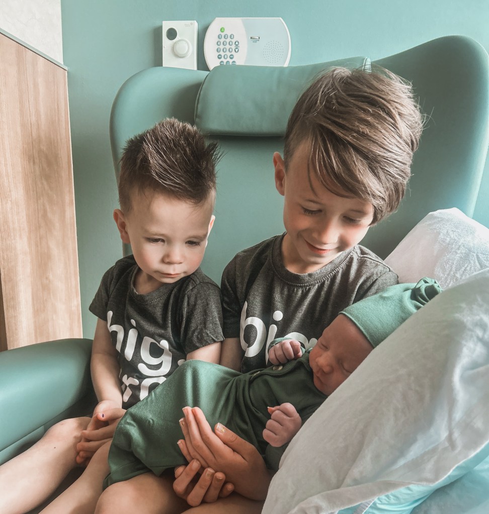 On the drive home I knew. The contractions kept coming more regularly and I knew we would be going to the hospital that day. I got home and we made the boys dinner and chatted with them about the baby while making sure bags were packed up. Then it was off to Grandma’s to drop them off and off to the hospital!