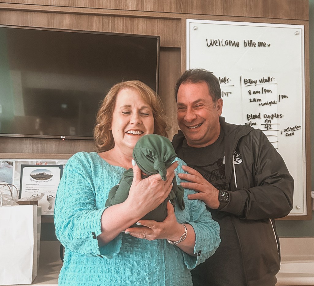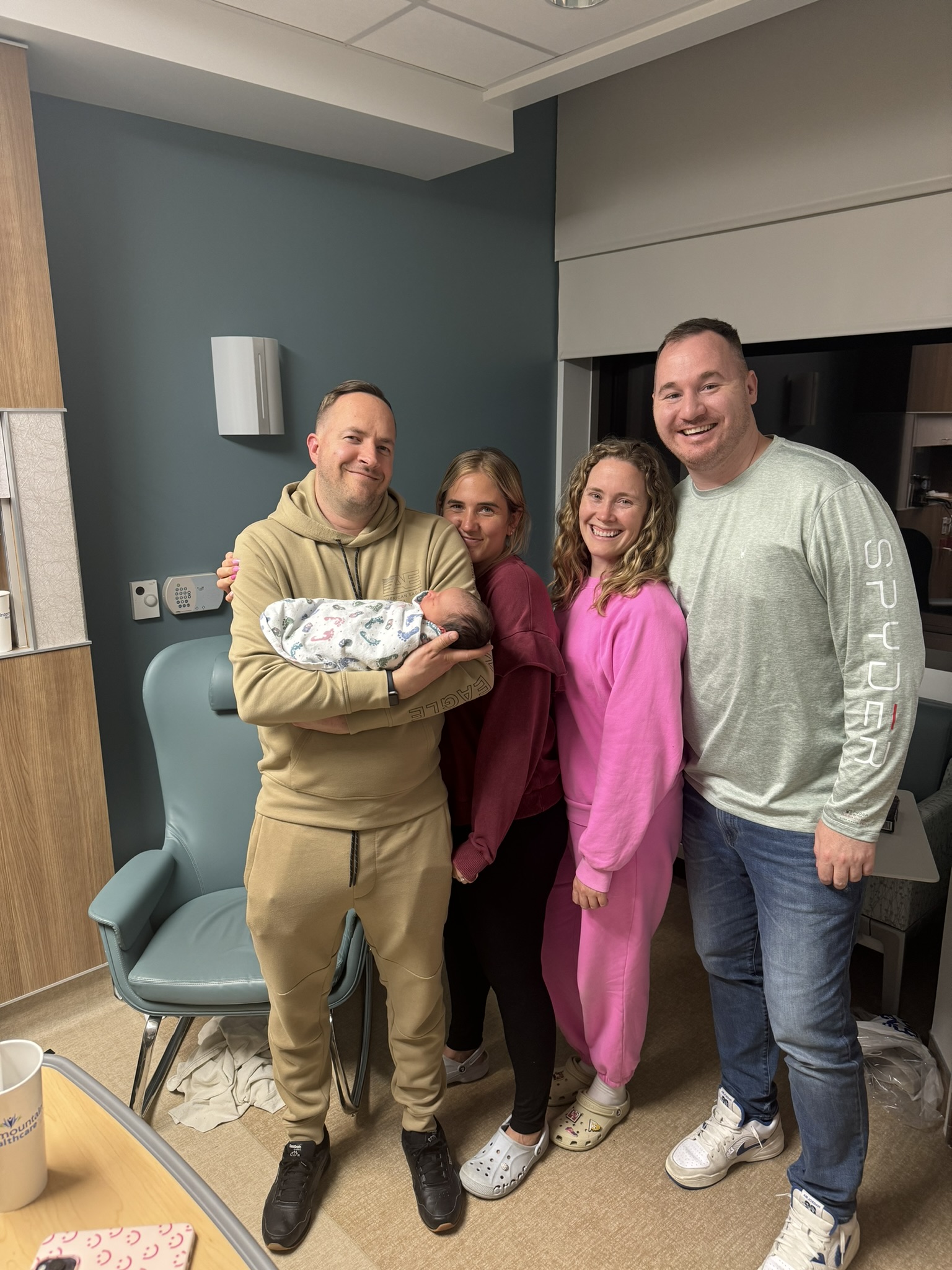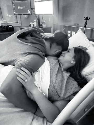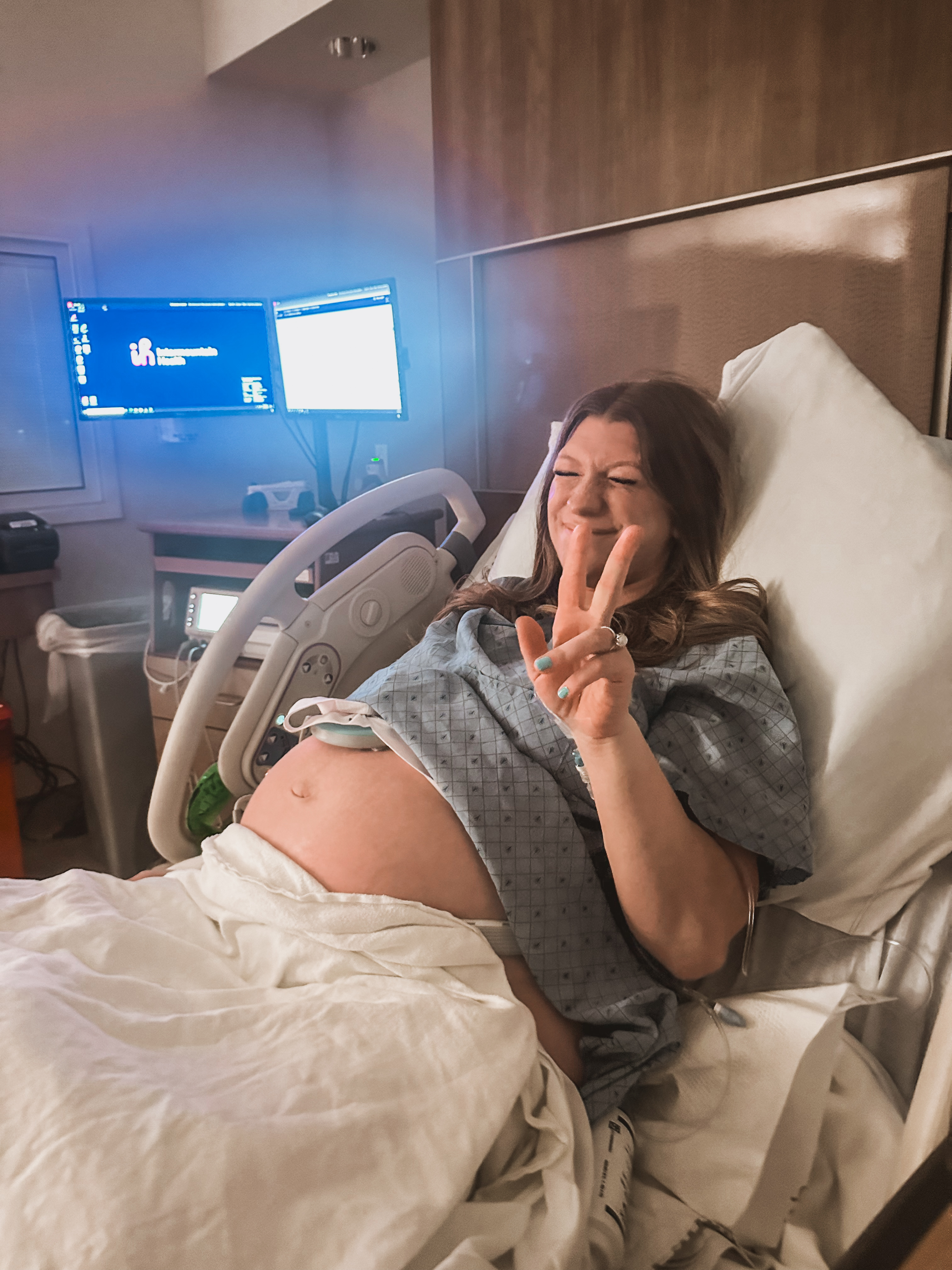 My cute besties arrived to take pictures and video and make sure they didn’t miss capturing a thing! They were so sweet to come and sleep on tiny couches to make sure they didn’t miss it. I got my epidural and the contractions started to slow way down. I moved to a six over a couple hours while we tried to sleep, but I got stuck there. The catheter balloon was in front of the baby’s head so they had to move it so he could keep moving. They debated doing pitocin or breaking my water and decided to start giving me pitocin. I slept off and on, chatted with my friends, watched some shows, and waited more.