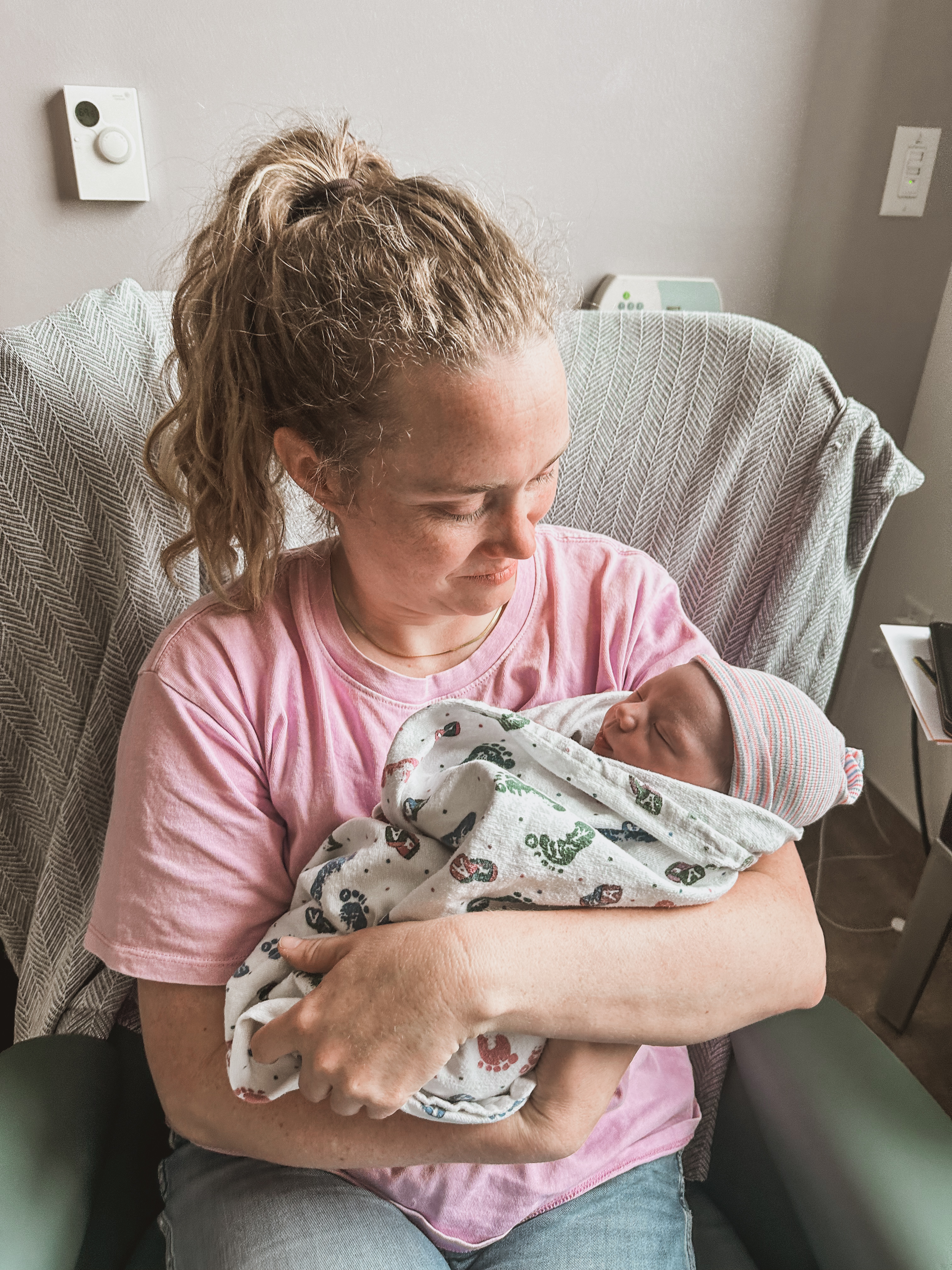 I took the boys to gymnastics like normal and dropped Graham off at school. While I was eating lunch I started to have some contractions but they were short, not painful, and there were only a few. I thought nothing of it and kept working but when Randy texted me to check in I told him I was having a few contractions but they were no big deal. Good thing he didn’t listen and drove home after his work lunch!