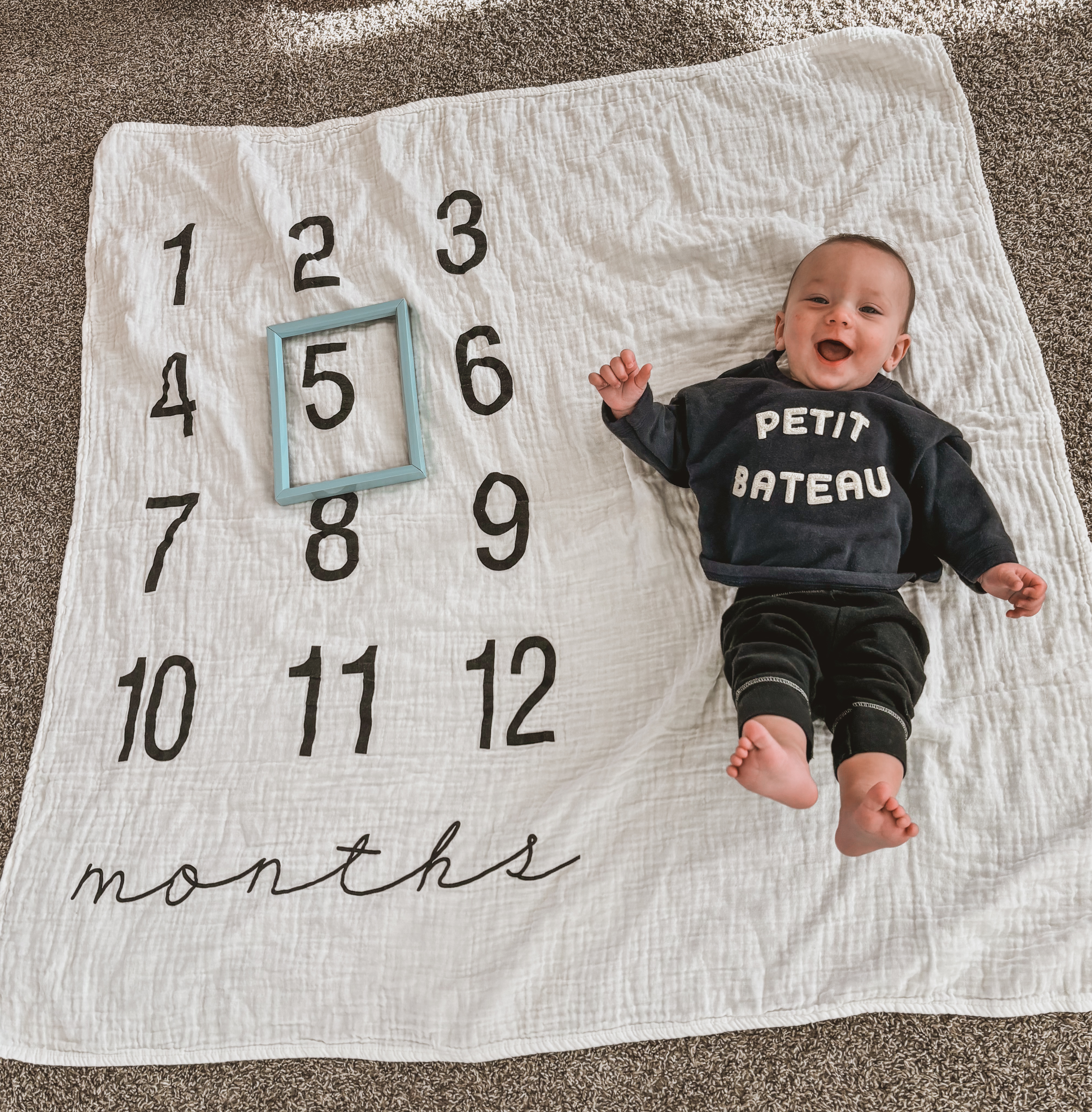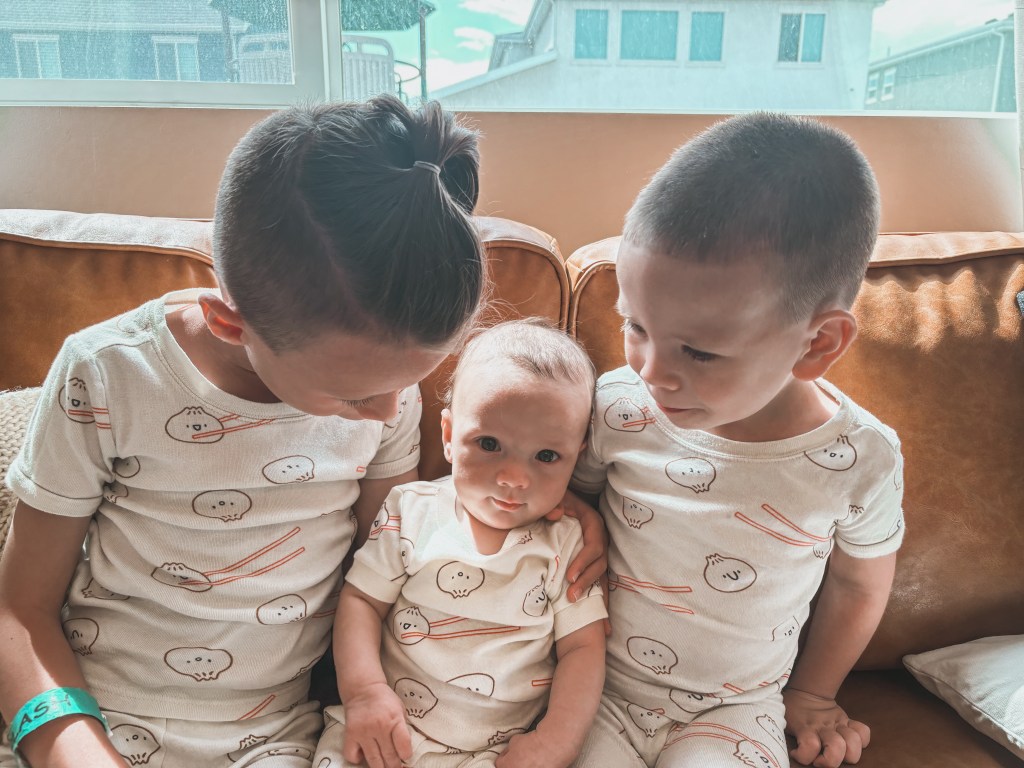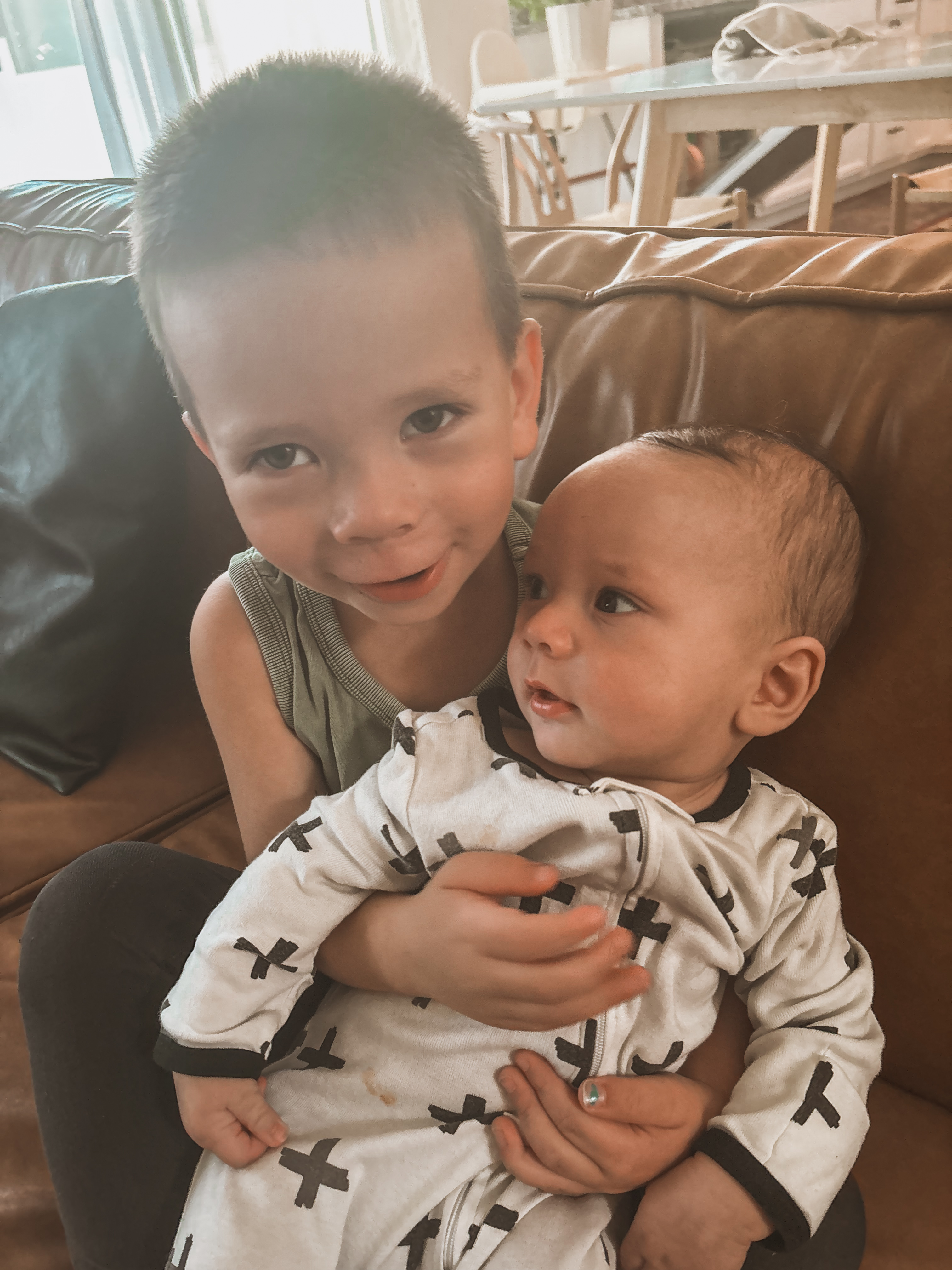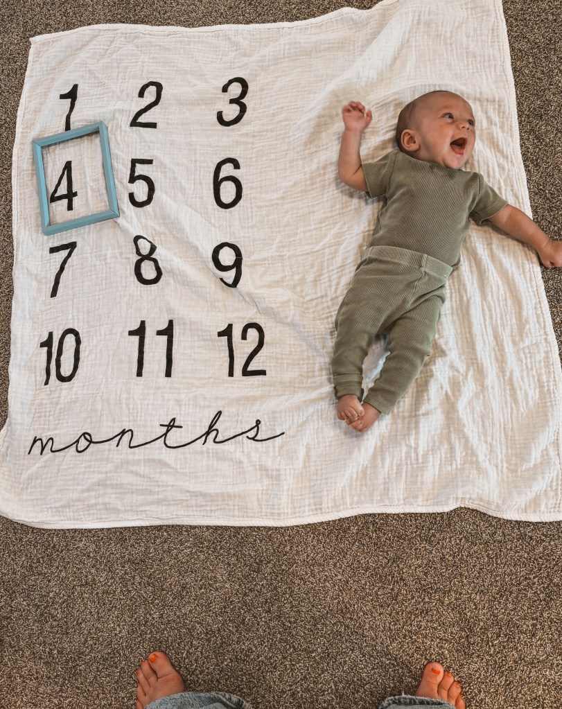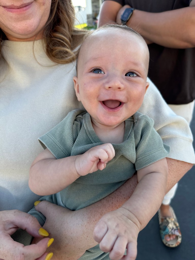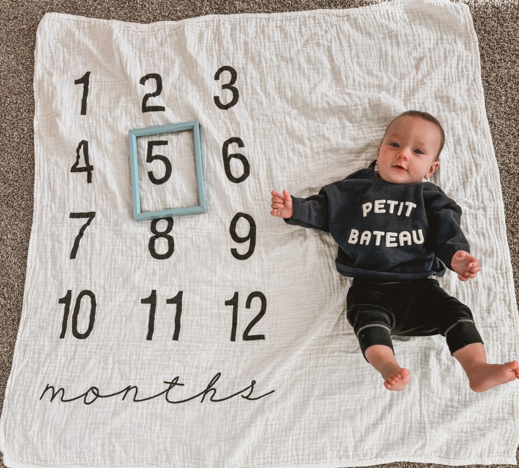 Clarke is 5 MONTHS OLD which is wild. He rolls over non-stop, is a great sleeper, is unsure how he feels about eating food but always is so jealous when anyone eats around him, and is such a chatterbox! He follows his brothers with his eyes everywhere they go.