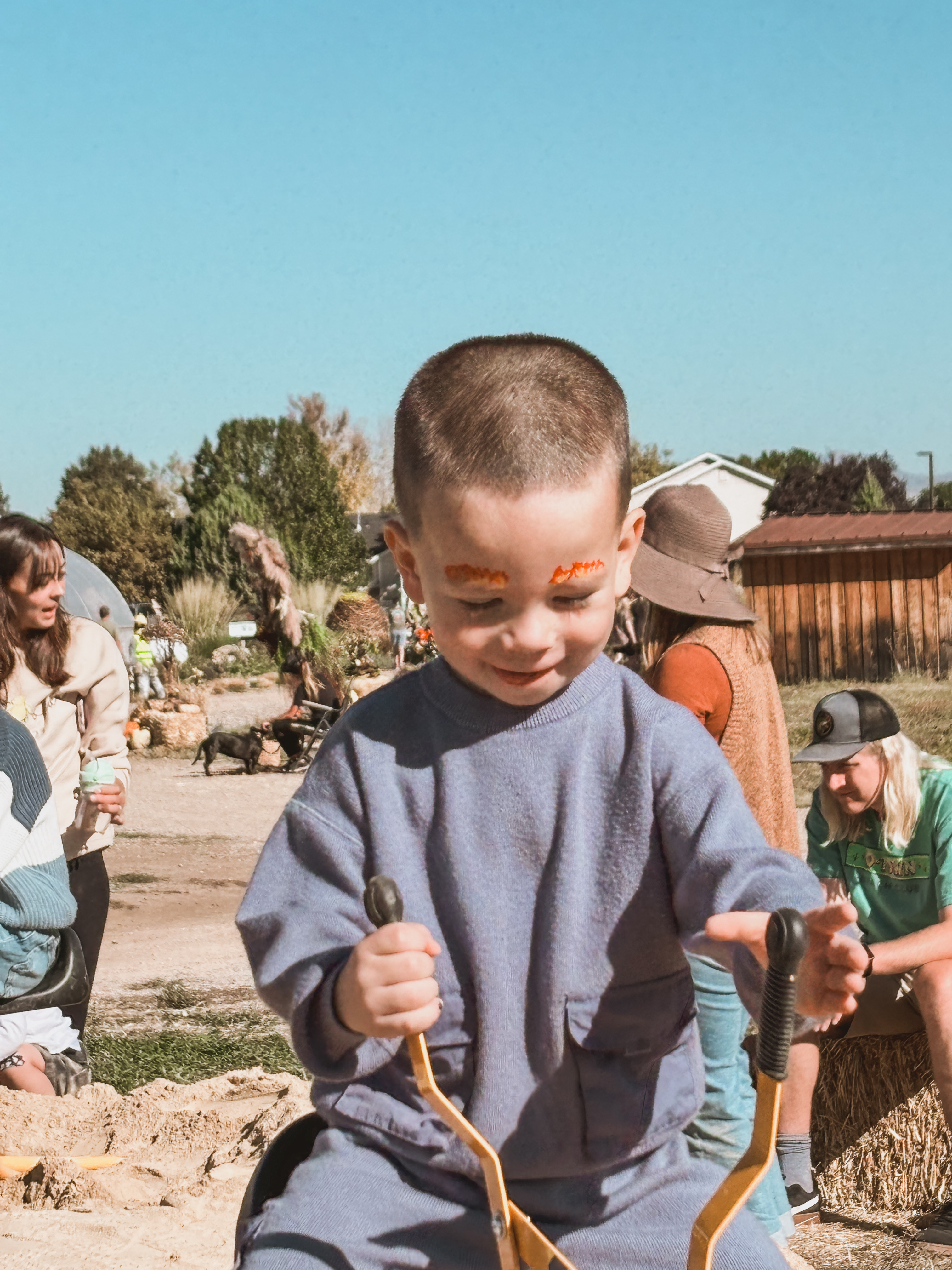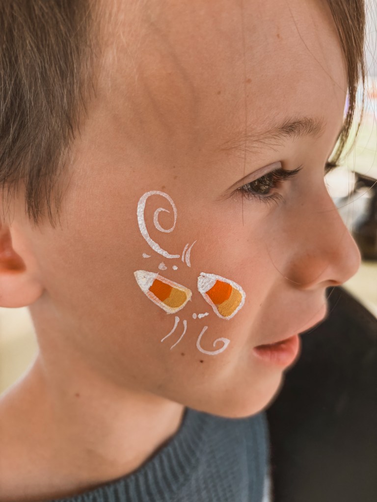 The boys had a blast at the Scarecrow Walk getting face paint, seeing the scarecrows, playing in the dirt, and painting pumpkins!